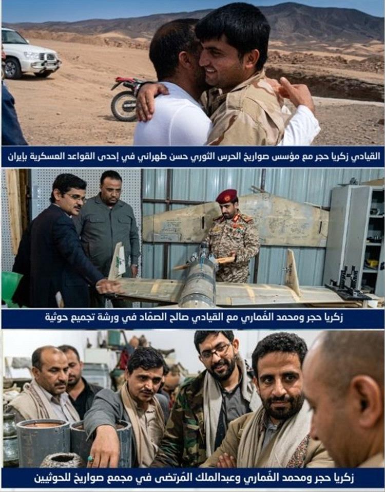 وأظهرت المواد المسربة ظهور كل من "محمد عبدالكريم الغماري" (رئيس أركان المليشيا) و"زكريا عبدالله حجر" (مسؤول برنامج المسيرات) برفقة قائد القوة الصاروخية الإيرانية الراحل حسن طهراني مقدم، داخل مختبرات عسكرية سرية، مما يعد دليلاً مادياً دامغاً على عمق الارتباط العملياتي والتقني بين الطرفين.