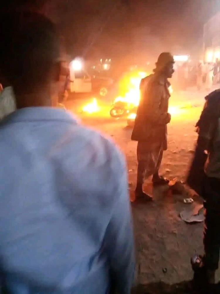 شهد سوق سناح بمحافظة الضالع، قبل قليل، انفجار دراجة نارية، أمام بوابة شركة المريسي.