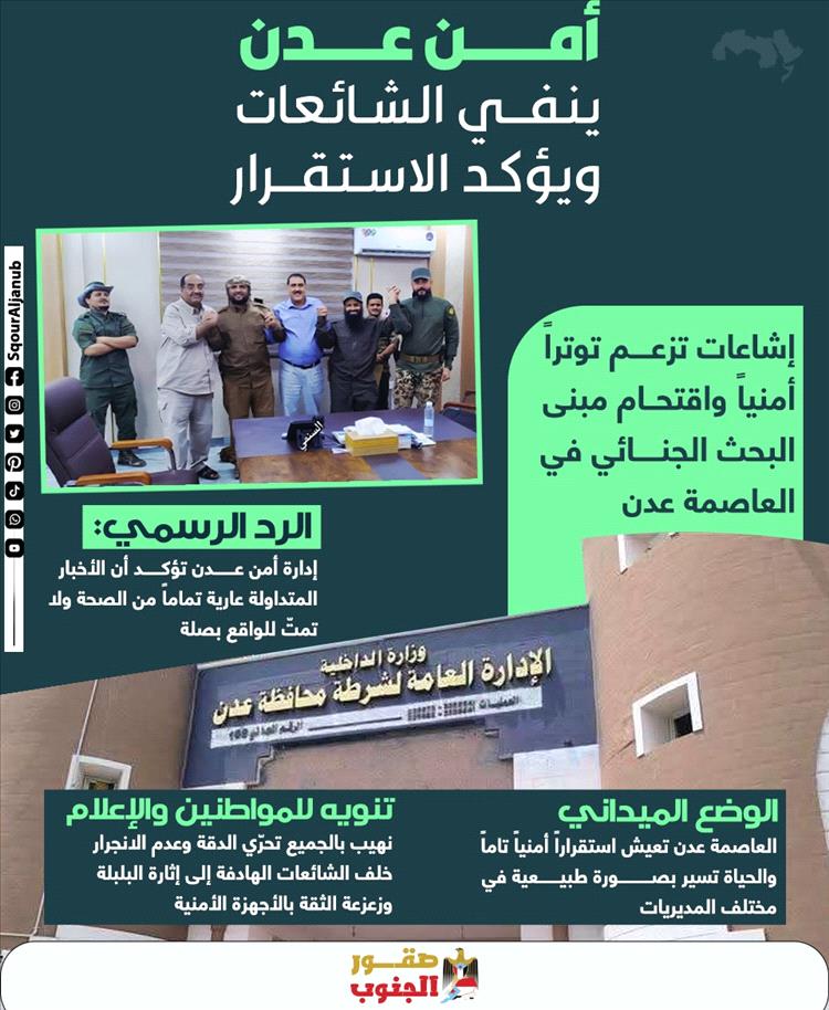 أمن عدن ينفي الشائعات ويؤكد الاستقرار "إنفوجرافيك"