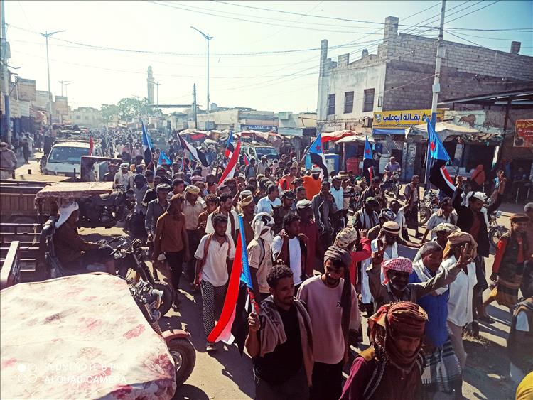 انتقالي أبين ينظم مسيرة جماهيرية بزنجبار احتفالاً بانتصارات القوات الجنوبية في حضرموت