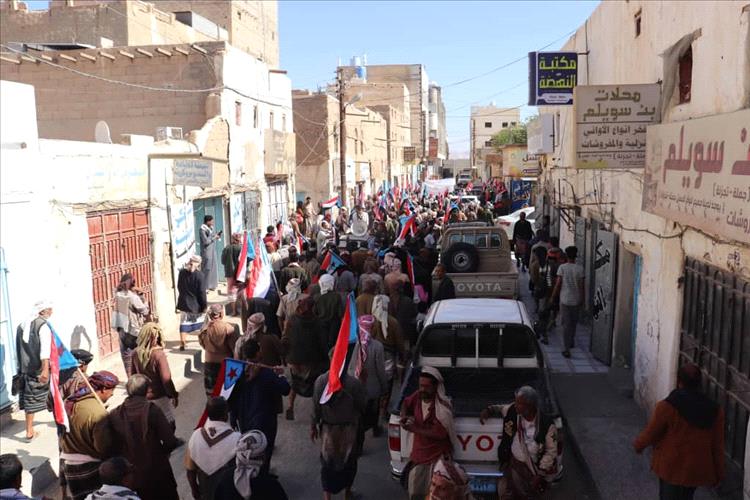 انتقالي شبوة ينظم مسيرة جماهيرية احتفالًا بانتصارات القوات الجنوبية في عارين وحضرموت