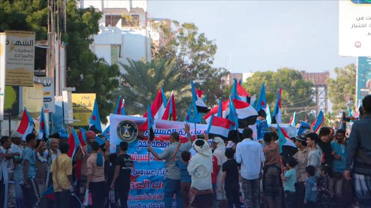 وانطلقت المسيرة الجماهيرية من نقطة صبر بمديرية تبن، متجهة نحو ساحة العروض بالعاصمة عدن، يتقدمها رئيس تنفيذية انتقالي لحج، وضاح الحالمي، رافعين أعلام الجنوب وصور الرئيس القائد عيدروس الزُبيدي، ومرددين الهتافات المطالبة بإعلان دولة الجنوب العربي.