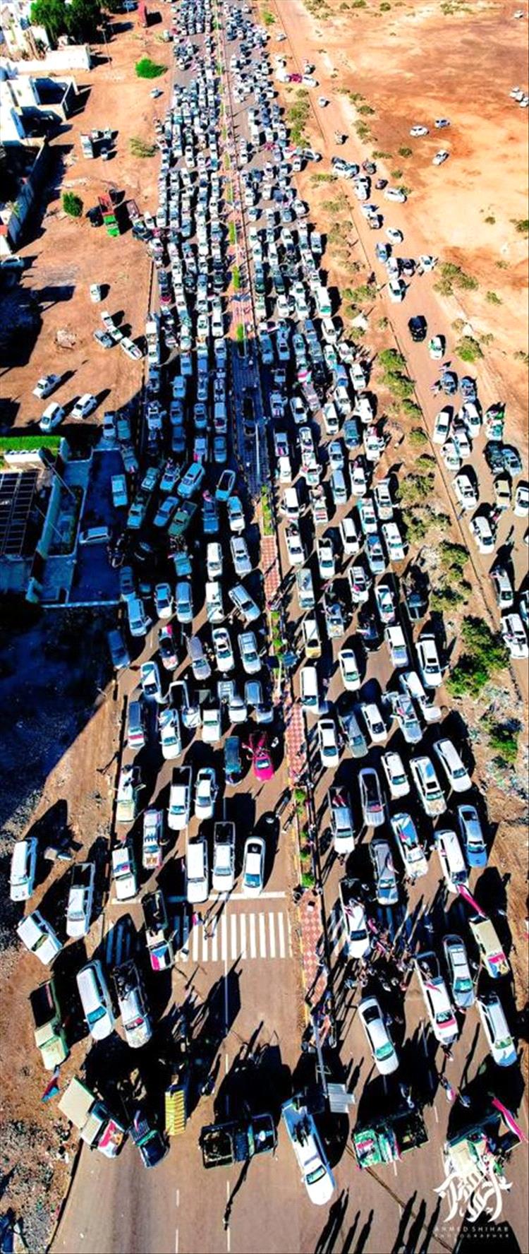 واظهرت صور لنشطاء موكب كبير لابناء الظالع في منطقة العريش بخورمكسر في انتظار بقية المواكب في نقطة التجمع للتوجه صوب ساحة العروض.