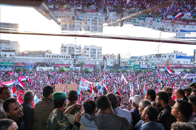 واحتشد الآلاف من المواطنين في ساحة الاعتصام، رافعين الأعلام الجنوبية، ومرددين الهتافات الوطنية، ومجددين تفويضهم للقيادة السياسية الجنوبية لاتخاذ ما يلزم من خطوات سياسية وتاريخية لاستعادة دولة الجنوب، باعتبار ذلك حقًا مشروعًا لا يقبل المساومة أو التأجيل.