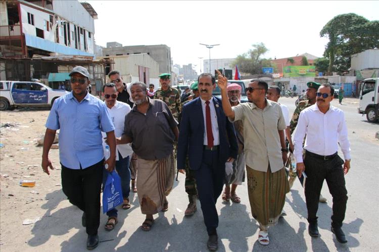 باتيس يتفقد أضرار الضربة الجوية السعودية على ميناء المكلا وما خلفته من أضرار على الأحياء السكنية المجاورة