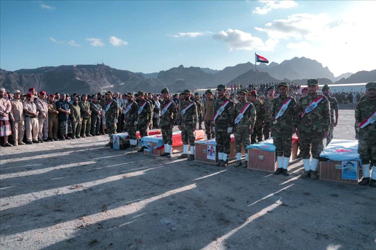 وشُيِّعت جثامين الشهداء في موكب جنائزي مهيب، تقدّمه الرئيس الزُبيدي وعدد من أعضاء هيئة رئاسة المجلس الانتقالي الجنوبي، والوزراء ونواب الوزراء، وعدد من القيادات العسكرية والأمنية، إلى جانب عدد من المشايخ والوجهاء والشخصيات الاجتماعية، وأهالي وذوي الشهداء، وجموع غفيرة من المواطنين.