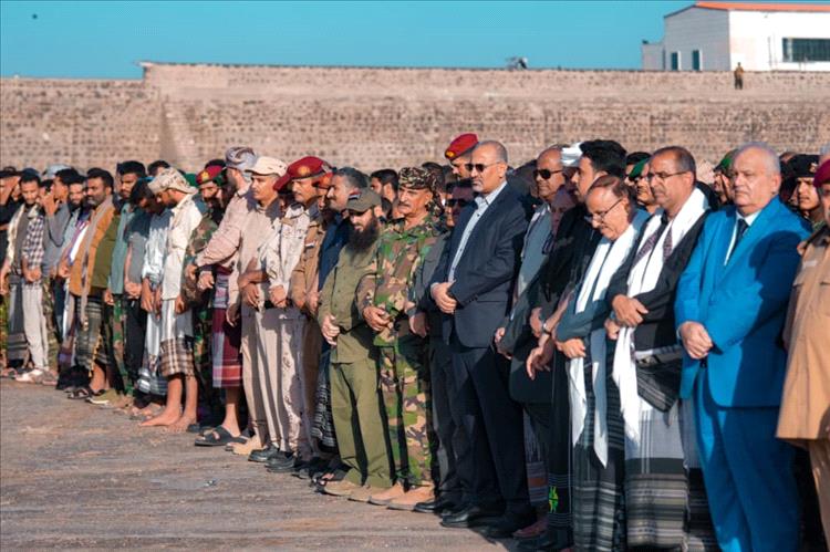 الرئيس القائد عيدروس الزُبيدي يؤدي صلاة الجنازة ويتقدّم جموع مُشيّعي شهداء عملية "المستقبل الواعد"