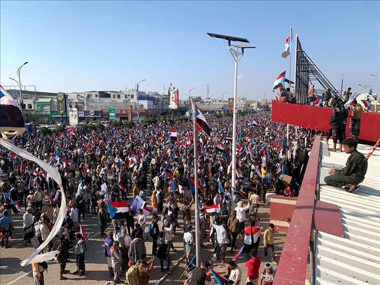 حشود غير مسبوقة في ساحة العروض بعدن دعما للمجلس الانتقالي وا.