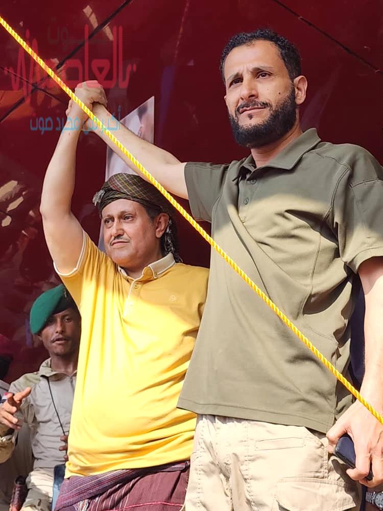 ولم تكن المليونية مجرد تجمع شعبي، بل حملت أبعاداً سياسية عميقة تجلت في ظهور أبرز رجال الدائرة الضيقة للرئيس القائد عيدروس الزبيدي على هرم منصة العروض، وفي مقدمتهم مدير مراسيم الرئيس، محمد محمود الخربلي، ورئيس المجلس الانتقالي في لحج، وضاح الحالمي.
