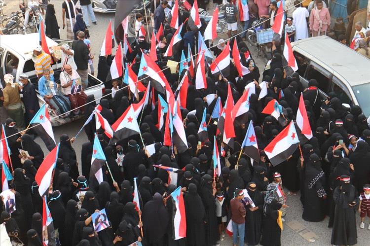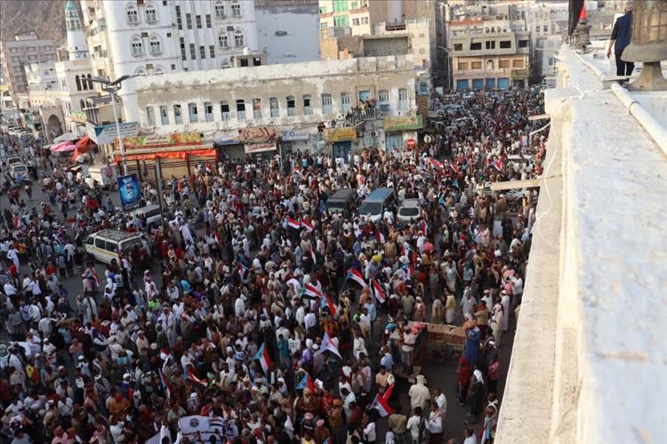 وردد الجماهير الهتافات التي تؤكد تمسكها بالتفويض الشعبي للرئيس الزُبيدي والمجلس الانتقالي الجنوبي باعتباره حامل سياسي ووطني للقضية شعب الجنوب.