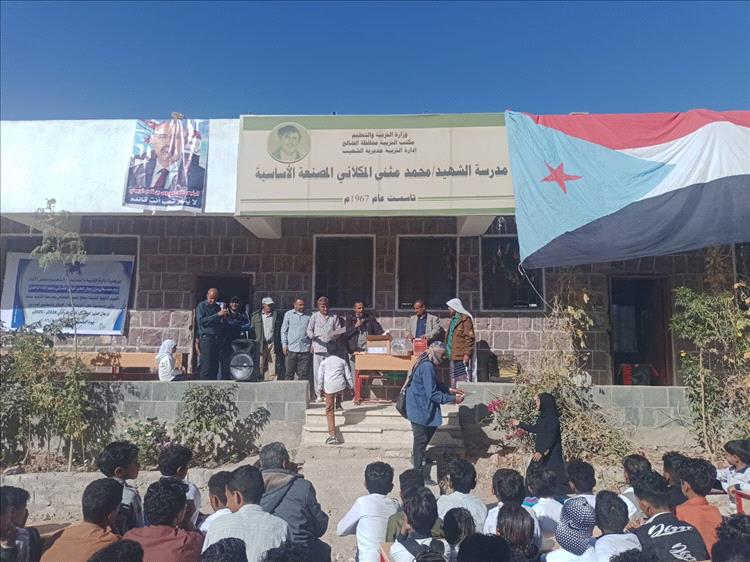 في تقليدا سنويا رائعا وبرعاية ادارة التربية والتعليم في مديرية الشعيب محافظة الضالع اقامت مدرستي الشهيد محمد مثنى المكلاني وثانوية الفقيد صالح حسين المصنعي ومجلس الآباء بحضور الاستاذ محمد علي الحيمدي مدير ادارة التربيه والتعليم في مديرية الشعيب ونوابه الاستاذ مارب ناجي قاسم والاستاذ جميل محمد عبيد وبحضور أعضاء مجلس الآباء واولياء أمور الطلاب والطالبات صباح اليوم الخميس  فعاليه تكريميه سنويه لاوائل الطلاب والطالبات في جميع المراحل الدراسية على نفقة رجلي الخير الأخ عبداللاه سعيد قاسم الواقدي والاخ شوقي احمد ناصر المشرقي جزاهم الله خير